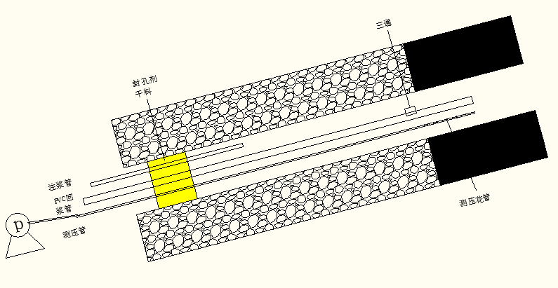 此過(guò)程也可采用分段注漿法:即先向孔內(nèi)注入少量較高濃度配比的漿液,待經(jīng)過(guò)30-50分鐘后,再向孔內(nèi)注入正常配比的漿液直至注滿。